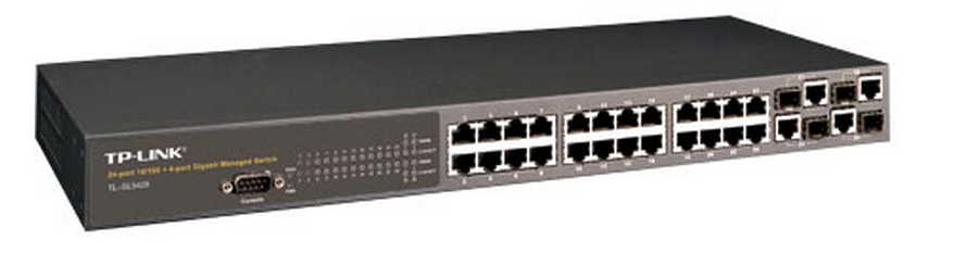 TP-Link TL-SL5428E, FullManagedSwitch 24+4G Gigabit-Uplink, 24-ports 10/100Mbit, 2-ports 10/100/1000Mbit, 2 combo SFP slots, Supports Port/Tag-based/v