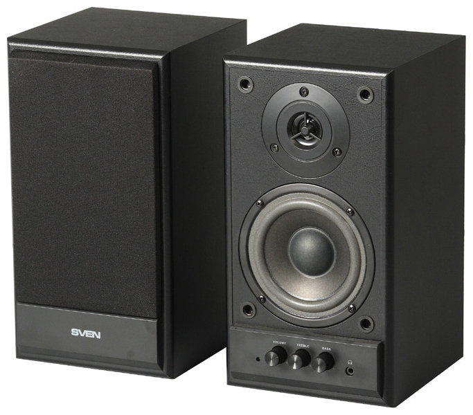 SVEN SPS-702 Black leather, 2.0 / 2x20W RMS, headphone jack, wooden, (4"+3/4")