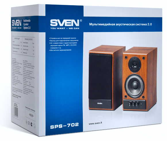 SVEN SPS-702 Walnut, 2.0 / 2x20W RMS, headphone jack, wooden, (4"+3/4")
