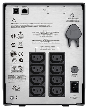 Автоматизированная и эффективная защита электропитания сетевого оборудования: от начального уровня до систем с масштабированием по времени автономной работы. Идеально подходит для серверов, маршрутизаторов, коммутаторов, концентраторов и других сетевых устройств. ИБП Smart-UPS отличается предельно высокой эффективностью при малых, средних и высоких уровнях нагрузки, что делает его идеальным выбором для современных многопроцессорных или виртуализированных серверов с переменным энергопотреблением. Все модели ИБП Smart-UPS оснащаются 16-сегментным светодиодным дисплеем, усовершенствованным блоком автоматической стабилизации напряжения (AVR), и обеспечивают чистую синусоидальную форму выходного сигнала в режиме от батареи. *Защита* Защита от перегрузки: Eсть Защита телефонной линии: Нет Защита локальной сети: Нет Защита от высоковольтных импульсов: Eсть Защита антенного кабеля: Нет Защита от короткого замыкания: Eсть Фильтрация помех: Eсть Тип предохранителя: Плавкий *Технические характеристики* Время работы при полной нагрузке, мин: 7.7 Макс. поглощаемая энергия импульса, Дж: 459 Время зарядки, час: 3 Выходная мощность, ВА/Вт: 1500/ 900 Время работы при половинной нагрузке, мин: 27.6 Количество выходных разъемов питания: 8 Тип: Интерактивный Возможность установки в стойку: Нет Тип выходных разъемов питания: IEC 320 C13 (компьютерный) Форма выходного сигнала: Cинусоида Интерфейсы: USB *Размеры и вес* Ширина, мм: 171 Высота, мм: 219 Вес, кг: 24.09 Глубина, мм: 439 *Функциональность* Холодный старт: Eсть Звуковая сигнализация: Eсть Отображение информации: ЖК-экран *Вход / Выход* Входное напряжение, В: 180- 287 Входная частота, Гц: 47- 63 На входе: 1-фазное напряжение На выходе: 1-фазное напряжение