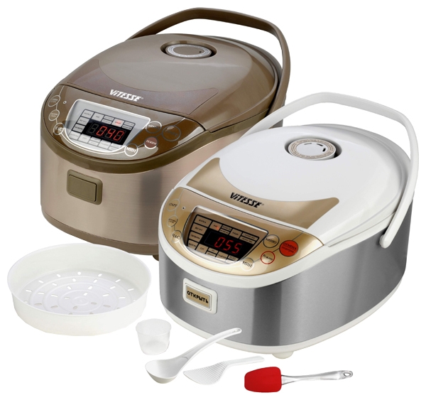 Мультиварки Vitesse VS-599 – компактна, но за маленькими габаритами скромно прячется могущественная кухонная волшебница. 16 встроенных автоматических программ с легкостью решат любую кулинарную задачу. Сварить суп, бульон, кашу, потушить, пожарить, испечь, приготовить на пару. Угостить близких свежим йогуртом домашнего приготовления. Удивить горячей молочной кашей с утра, при условии, что утром на кухню никто не ходил (режим «отложенный старт»). Экономия времени, нервов, сил, благодарность домашних – вот что ждет хозяина этой мультиварки. Равномерное прогревание с трех сторон и золотистую корочку обеспечит 3D нагрев. Керамическое покрытие чаши с отличными антипригарными свойствами сочетает в себе безопасность и экологичность, легкость в уходе. В процессе эксплуатации можно вносить изменения в готовку, изменяя температурный режим и время приготовления с помощью соответствующих режимов. Комплектуется силиконовой лопаткой, ложкой, навесным контейнером-пароваркой, половником и книгой рецептов. *Технические характеристики* Мощность: 700 Вт Объем кастрюли: 4 л Количество программ: 16 Программы приготовления: выпечка, каша, йогурт, паста, тушение, приготовление на пару, крупа Внутреннее покрытие кастрюли: антипригарное Голосовой гид: нет Управление: электронное Функция йогурт: есть Ручная настройка: нет Особенности: 3D нагрев, Поддержание тепла, Отложенный старт Функция скороварки: нет Пароварка: есть Дисплей: есть