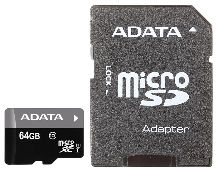 64Gb microSDXC ADATA UHS-I, Class10, w/SD adapter