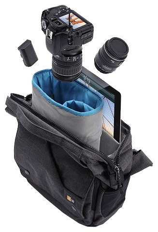 Removable, cinch-top pod with adjustable walls and handles offers dedicated storage for your DSLR camera, one additional lens, flash or accessories Integrated storage pocket for yourсумка для фотокамеры Case Logic FLXM-101 Antracite