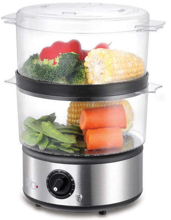 Пароварка SINBO SFS 5703 Индикация включения есть Материал корпуса нерж. сталь Материал паровых корзин прозрачный пластик Дисплей нет Долив воды во время приготовления нет Отсрочка старта нетПароварка SINBO SFS 5703