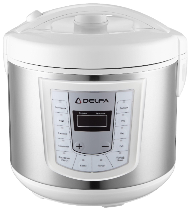 DELFA DMC-10 Тип мультиварка Мощность 700 Вт Объем 5 л Материал корпуса металл/пластик Управление электронное 3D нагрев нет Автоматических программ 12, включая: выпечка, каша, крупа, тушение, приготовление на пару, жарка, йогурт Максимальное время установки таймера 24 ч Поддержание тепла есть Отложенный старт есть Особенности книга рецептов; контейнер-пароварка, ложка для риса, мерный стаканчик