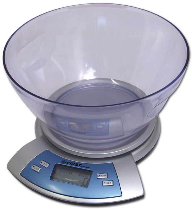 FIRST 006406 Тип весов электронные Максимальный вес 5 кг Чаша есть Материал чаши/платформы пластик Цена деления 1 г Тарокомпенсация есть Автоматическое выключение есть Цвет серебристый, белый Производитель First