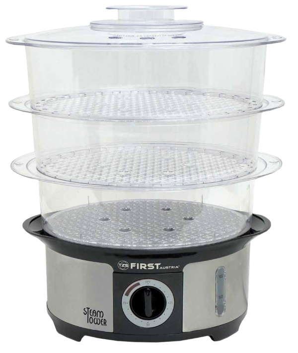 Индикация включения есть ###Конструкция Материал корпуса пластик/нерж. сталь Материал паровых корзин прозрачный пластик Объем резервуара для воды 1.6 л Углубления для варки яиц есть Дисплей нет Долив воды во время приготовления есть