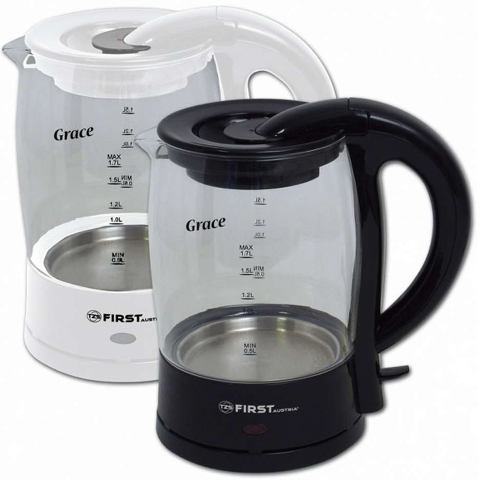 Электрочайник FIRST 005406-1 Объём 1.7 л Потребляемая мощность 2200 Вт Тип нагревательного элемента скрытый Вращение на 360° есть Индикатор уровня воды есть Отключение при закипании есть Цвет белый, черный Материал корпуса стекло, пластик . Производитель First