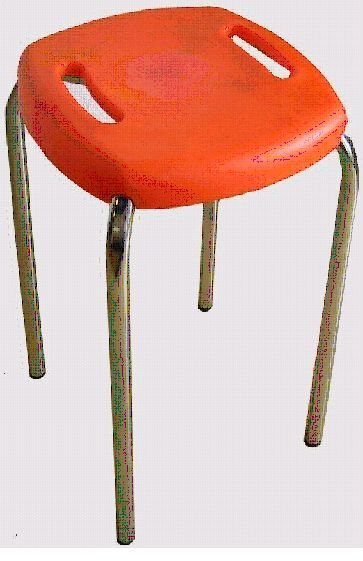 Табурет на хромированной раме. Пластиковое сидение с прорезями для удобного переноса. Изготавливается в четырех видах пластика