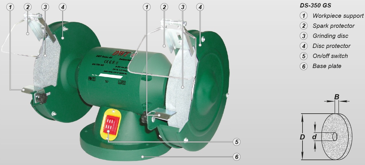 Точило DWT DS-350 GS целесообразно использовать для удаления заусенцев, снятия фасок с различных материалов, затачивания инструмента. Модель оснащена крупнозернистыми и мелкозернистыми камнями, с помощью которых вы сможете обрабатывать материалы различной плотности. Устройство характеризуется расширенными функциональными возможностями, применяется для грубой обработки заготовки, также его можно использовать для окончательного затачивания изделия. Точило ДВТ DS-350 GS представляет собой выносливый и надежный электроинструмент, который идеально справляется со всеми поставленными задачами. Высокого уровня безопасности при эксплуатации удалось достигнуть за счет включения в состав модели специального стекла, защищающего оператора от мелких частиц металла и искр. Номинальная потребляемая мощность двигателя составляет 350 Вт, а рабочая частота вращения изменяется в пределах 2950 об/мин. Устройство в полной мере удовлетворяет строгим предъявляемым требованиям, пользуется громадным спросом на мировом рынке. В нашем интернет-магазине Лодырей.нет вы можете купить точило DWT DS-350 GS по цене, которая изменяется в низких пределах. Производитель DWT Номинальная потребляемая мощность 350 Вт Номинальное число оборотов 2950 мин-1 Напряжение 230 В Диаметр шлифкруга 200 мм Толщина шлифкруга 20 мм. Посадочный размер шлифкруга 16 мм Вес 13.3 Кг Комплектация -защита от искр с креплением -опорная пластина -зкрепежный винт с гайкой -шлифовальный диск Гарантия, мес. 24 месяца Класс инструмента Бытовой инструмент