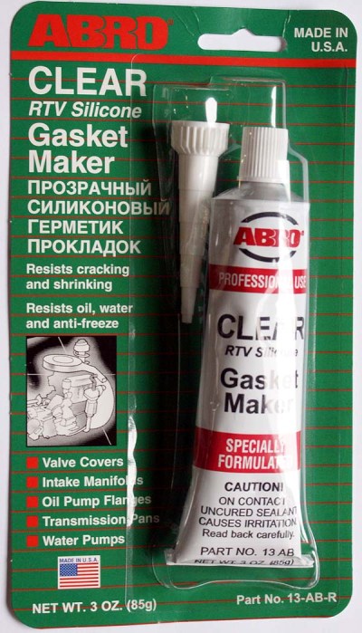 СИЛИКОНОВЫЙ ГЕРМЕТИК ПРОКЛАДОК ABRO. Многоцелевые герметики Blue, Red, Clear, Black предназначены для ремонта или замены почти всех встречающихся в автомобиле прокладок. Они легко принимают любую форму и успешно выдерживают сжатие, растяжение и сдвиг; совершенно не разрушаются под действием автомобильных масел, воды и антифриза; обладают высокой стойкостью к бензину и тормозной жидкости. Более мягкий герметик Blue, Clear, Black (голубой, прозрачный, черный) предназначены для применения при температурах до 260°С, в то время как более жесткий герметик Red (красного цвета) разработан для более высоких температур до 343°С.