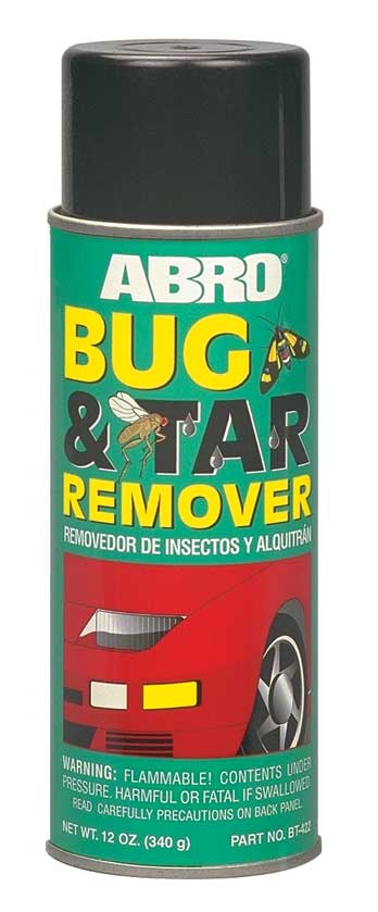 ABRO Bug & Tar Remover - Очиститель битумных пятен и насекомых (BT- 422) Растворяет и удаляет смолу и дорожную грязь с кузова автомобиля, хромированных деталей, бамперов и покрытий колес. Никогда не применяйте под воздействием прямых солнечных лучей и не распыляйте на автомобильное стекло. Удаление смолы: Поверхность должна быть сухой. Обильно распылите продукт на загрязненную область, и выдержать приблизительно 30 секунд для впитывания. Сотрите смолу и дорожную грязь мягкой тканью, предварительно опрыскав ее данным продуктом. Повторите чистку для плохо очистившихся мест. Удаление насекомых: Следуйте инструкциям удаления смолы, смочив ткань в воде перед напылением. ВНИМАНИЕ: Содержит дистилляты нефти. Содержимое баллона под давлением. Не подвергайте воздействию прямых солнечных лучей или открытого пламени, не нагревайте. Используйте при хорошей вентиляции. Избегайте длительного контакта с кожей. РАЗДРАЖАЕТ ГЛАЗА! При попадании в глаза, промойте проточной водой в течение 15 минут. При контакте с кожей, место попадания вымойте с мылом и водой. При проглатывании, не стимулируйте рвоту. Немедленно вызовите врача! Храните в местах, недоступных для детей.