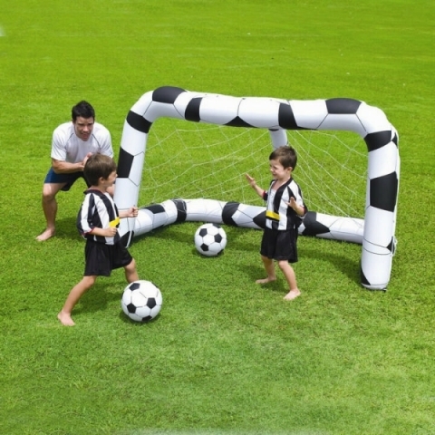 Описание Надувные футбольные ворота от Bestway станут отличным спутником Вашей семьи в поездке за город или даже в походе на природу. Ведь теперь Вы сможете устроить футбольное поле для детей там, где захочется. Ворота и мячи быстро надуваются при помощи насоса (в комплект не входит) и устойчиво держатся на земле. Если Вы планируете пользоваться воротами часто в тех местах, где нет электричества, то лучше приобрести аккумуляторный насос. Он не займёт много места в рюкзаке. На даче можно использовать электрический насос, присоединив его к удлинителю или автомобильному прикуривателю. Ножной или ручной насос обойдётся гораздо дешевле, но скорость накачивания надувных изделий существенно снижается. Характеристики: Размер ворот: 213х122х137 см Для детей от 3-х лет