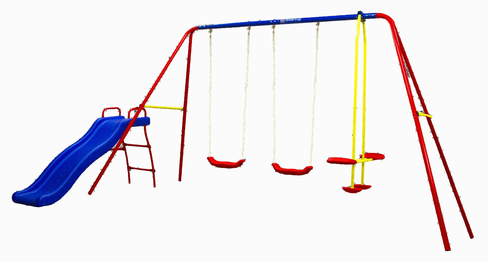 **Игровой комплекс с качелями** удобно использовать как в просторном помещении, так и на детских игровых площадках. Комплекс прост в установке и без острых углов. Одновременно может качаться четверо детей. Комплекс состоит из двух простых качелей без спинки, и одной парной качели. **Размер:** 380*223*188H **Возраст**: 3+ Максимальный вес: 45 кг