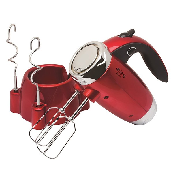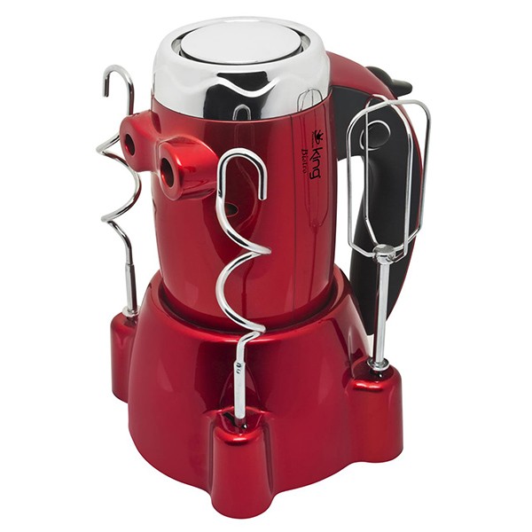 KING P 221 R Производитель King Модель P 221 R Bistro Основные характеристики Мощность: 300 Вт Насадки из нерж. стали Стойка 5 режимов скоростей + дополнительный импульсный режим Насадки для взбивки и для замешивания теста Удобный прибор для хранения аксессуаров Турбо функция