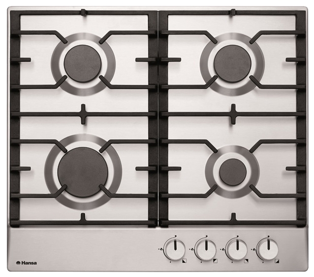 Варочная панель Hansa BHGI63030 газовая варочная панель поверхность из нержавеющей стали 4 газовые конфорки переключатели поворотные электроподжиг независимая установка габариты (ШхГ) 59x52 смВарочная панель Hansa BHGI63030