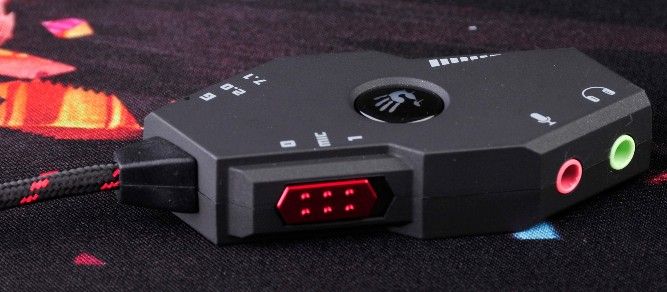 Gaming headset Tone Controller, A4-G480 Игровой звуковой контроллер A4 Tech Bloody G480 — совмещает в себе функции звуковой карты, микрофона для наушников, эквалайзера и процессора звуковых эффектов (DSP). Особенности: Может использоваться на компьютерах без звуковой карты, подключается по USB Встроенный микрофон с возможностью включения и отключения Регулятор громкости Цветовая индикация выбранного режима/предустановки: 5 цветов Разъемы для подключения наушников и/или внешнего микрофона 3.5 мм. 3 аудио режима: Игровой — идеально подходит для игр Стерео — для прослушивания музыки Имитация окружающего звука 7.1 — для просмотра фильмов 5 настраиваемых предустановок эквалайзера для каждого из режимов, включая особенные предустановленные натройки для игрового режима: Усиление звука шагов противника Усиление звука перезарядки оружия противника Усиление звука дыхания крадущегося противника Тип Контроллеры Дополнительные характеристики Аудиовход: USB Аудиовыход: 3.5 мм Аудиоканалы: 2.0, виртуальный 7.1 Частотный диапазон: 20 - 20000 Гц, микрофон: 50 - 16000 Гц Размеры Упаковка: 15 х 5 х 10 см Цвет Black