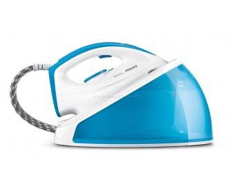 Statie de calcat Philips GC6606/20 Мощность 2400 Вт Давление пара 4 атм Подошва керамическая Постоянная подача пара 95 г/мин Вертикальный пар есть Емкость резервуара для воды 1200 мл Защита от накипи есть Время нагрева 2 мин Шаровое крепление шнура есть Длина шнура питания 2 м Цвет синий, белый . Производитель Philips