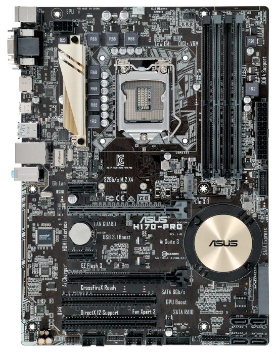 ASUS H170-PRO Intel H170, LGA1151, Dual DDR4 2133MHz, 2xPCI-E 3.0/2.0 x16, HDMI/DVI-D/RGB, AMD Quad-GPU CrossFireX, USB3.0, SATA RAID 6Gb/s, 1xM.2 Socket, SB 8-ch, GigabitLAN (placa de baza/материнская плата)