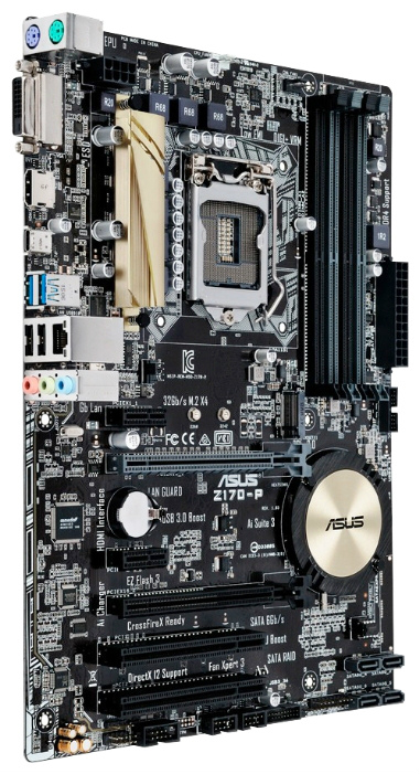 ASUS Z170-P Z170-P — функциональная материнская плата Asus формата ATX среднего уровня, предназначенная для новой платформы Intel и базируется на системной логике Z170, ориентирована на покупателей из числа оверклокеров. Intel Z170 Express – это новейший чипсет, оптимизированный для работы с процессорами Intel Core i7 / i5 / i3 / Pentium / Celeron 6-го поколения, устанавливаемыми в разъем LGA 1151. Он отличается высокой стабильностью, производительностью и пропускной способностью. Intel Z170 поддерживает интерфейс M.2, а также позволяет использовать встроенное графическое ядро процессора. Разгон памяти DDR4 Благодаря технологии ASUS T-Topology второго поколения, подразумевающей Т-образную топологию подключения слотов системной памяти, увеличивается ее разгонный потенциал. Именно это позволяет достичь частоты на уровне 3466 МГц при разгоне модулей памяти DDR4 на новых материнских платах ASUS. Высокоскоростная передача данных Используя четыре линии PCI Express 3.0/2.0, интерфейс M.2 обеспечивает скорость передачи данных до 32 Гбит/с, он идеально подходит для подключения современных твердотельных накопителей Данная материнская плата имеет два порта USB 3.0 Type-A, и один порт USB (5 Гбит/с) Type-С, а также есть возможность вывода четырех портов USB 3.0 на переднюю панель Интерфейс UEFI BIOS В отличие от традиционных BIOS-систем ASUS UEFI BIOS обладает графическим интерфейсом с поддержкой мыши. Он имеет режимы для новичков и энтузиастов. Режим EZ Mode Удобная настройка вентиляторов: гибкое управление вентиляторами системы охлаждения EZ XMP: быстро задействуйте профили XMP для разгона памяти Информация о SATA: отображает данные о портах SATA и подключенных к ним устройствах Настройка времени: легко задать системное время и дату с помощью одной лишь мыши Режим Advanced GPU POST: подробная информация о видеокартах ASUS, установленных в системе Secure Erase: восстановление производительности SSD-накопителей Последние изменения: отслеживайте историю всех изменений в настройках и сохраняйте профили на USB-накопителе Переименование портов SATA: для быстрой идентификации подключаемых устройств Игровой звук Подсветка аудиосистемы Экранирование Разделение аудиоканалов Аудиоконденсаторы премиум-класса Надежная стабильность — комплекс решений 5X Protection II обеспечивает непревзойденную надежность материнских плат ASUS, а строгие стандарты тестирования гарантируют их совместимость с огромным количеством компьютерных компонентов. Комплексная защита LANGuard — высокая пропускная способность, улучшенная защита Защита от перегрузки — эксклюзивное схемное решение со встроенными регуляторами напряжения для защиты чипсета, портов и аудиоподсистемы от неожиданных скачков напряжения в сети или в блоке питания Система питания DIGI+ — фирменный модуль управления питанием ASUS, который позволяет добиться максимальной стабильности и эффективной работы компьютера ESD Guards — для защиты от электростатического разряда ASUS использует специальную защитную схему, способную выдерживать разряд до 10 кВ через воздух и до 15 кВ при контакте Долгий срок службы — задняя панель материнских плат ASUS изготавливается из нержавеющей стали, покрытой тонким слоем оксида хрома, который обладает антикоррозийными свойствами Материнская плата готова к использованию с операционной системой Windows 10. Socket LGA1151 Поддерживаемые процессоры Intel Core i7/Core i5/Core i3/Pentium/Celeron Поддержка многоядерных процессо