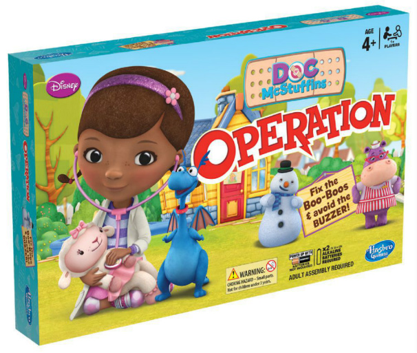 DOC MCSTUFFINS OPERATION Вид доктор Возраст от 4 лет Количество игроков 1-2 Размеры 41x25x5 cm Комплектация 10 х Пластырей, 9 х Фигурок "Болезни", Игровое поле, Инструкция Производитель США (Китай) Производитель HasbroDOC MCSTUFFINS OPERATION