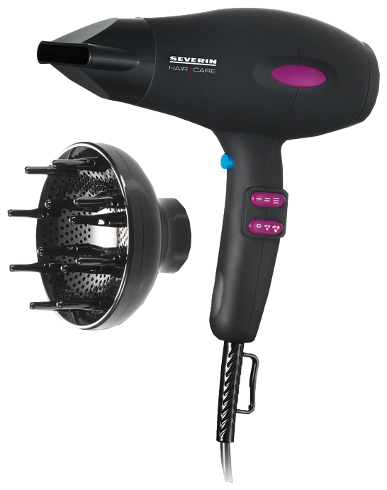 Фен 1900 Вт NEW Severin HT 0112 Тип фен Мощность 1900 Вт Количество режимов 6 Независимая регулировка нагрева и воздушного потока есть, режимов нагрева: 3, режимов интенсивности воздушного потока: 2 Дополнительные режимы подача холодного воздуха, ионизация Конструкция петля для подвешивания, съемный фильтр Комплектация футляр В комплекте диффузор, концентратор Покрытие керамическое