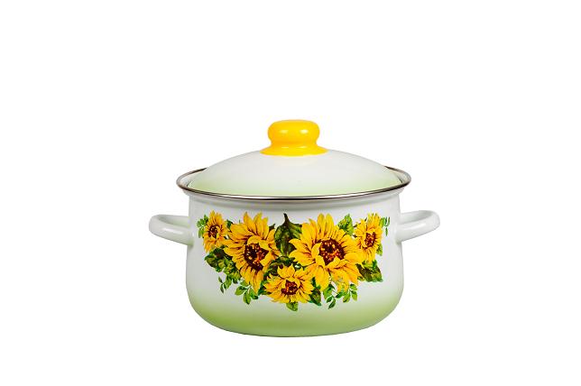 Кастрюля цил. 5 л Подсолнухи белая Стальэмаль 1RB241M-3