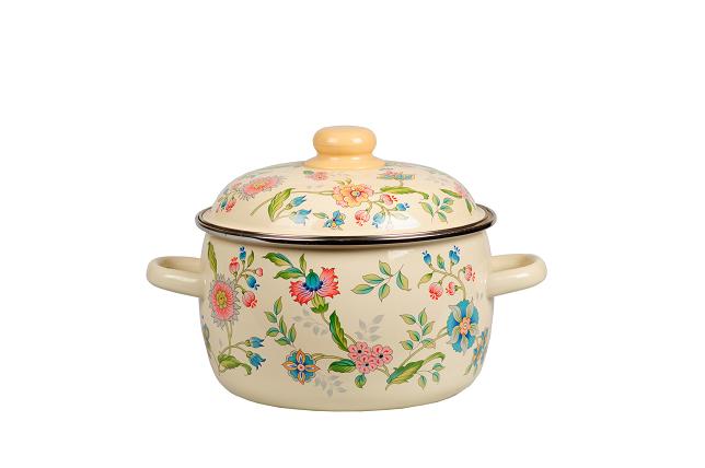 Кастрюля цил. 1.5 л Луговые цветы сл.кость Стальэмаль 3RB161M-2