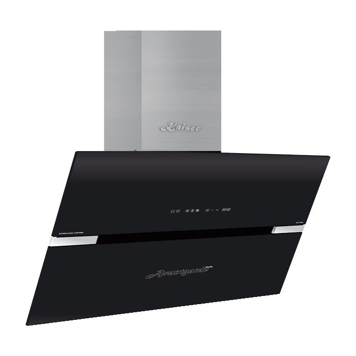 Вытяжка Kaiser AT 9407 NF Цвет: Черное стекло + нержавеющая сталь Производительность: 1000м3/ч Тип: каминная Количество моторов-1 Сенсорное управление Жидкокристалический дисплей Угольный абсорбирующий фильтр Многослойный металлический жироулавливающий фильтр Режимы работы: Телескопическая труба: 50-100 см Рециркуляция/отвод воздуха 3 скорости работы Галогенное освещение Ширина: 900мм.