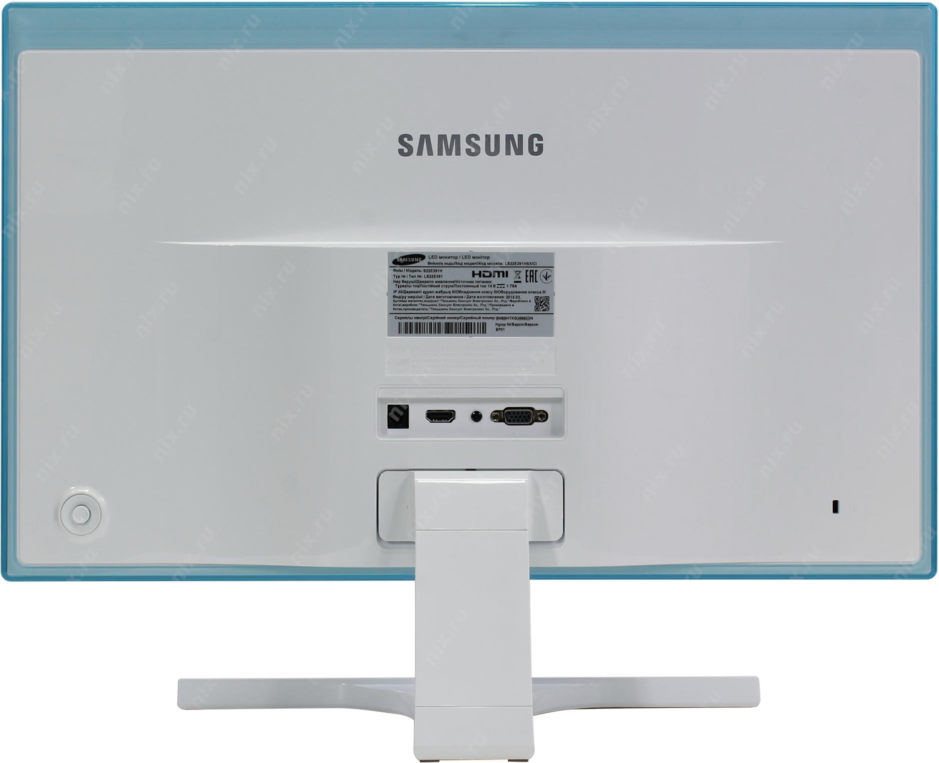 SAMSUNG S22E391H G.White/Blue Тип Монитор Диагональ экрана 21.5 " Тип матрицы PLS Разрешение экрана 1920x1080 Яркость 250 кд/м2 Контрастность 1000:1 Угол обзора 178 градусов Время отклика 4 мс Интерфейсы HDMI, VGA (D-Sub) Цвет белый, голубой Габариты 519x392x168 мм. Вес 3.55 кг Производитель Samsung