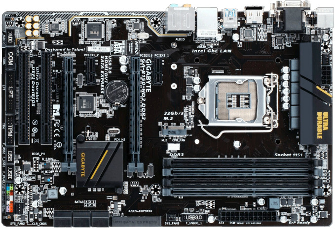 "MB S1151 Gigabyte GA-B150-HD3 DDR3 1.0 (Intel B150, ATX) 2xDDR3( DDR3/DDR3L 1866(OC)/1600/1333 MHz memory modules),DVI,VGA,HDMI,PCI-Ex.16x1,PCIEx1x2,PCI x1,6xSATA 6GB/s,1x M.2,6xUSB 2.0,6xUSB 3.0, 1xGbit LAN,Audio 8ch (Realtek® ALC887 codec)"