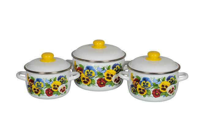 Набор кастрюль (1.5л/2л/4л) Анютины глазки Стальэмаль 1KA071M-3