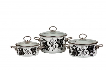 Набор кастрюль 2л/4л/5л Tango VITROSS 1DB035S-2 Торговая марка VITROSS Деколь Tango Вид Ободковая Форма цилиндр Тип упаковки индивидуальная Размер транспортной тары 305*310*265 Цвет эмали белоснежный / белоснежный