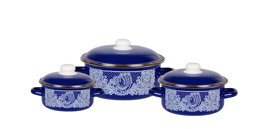 Набор кастрюль (1.5л/3л/5л) Вологодское кружево Стальэмаль 1KB081M-2