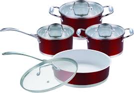 Набор посуды RAINSTAHL RS - 1086 WR Набор кухонной посуды Rainstahl RS-1086 — это посуда с высококачественным покрытием, прекрасно подходит для жарки, пассировки и тушения. Благодаря специальному покрытию, в них можно приготовить разнообразные блюда из мяса, рыбы, птицы и овощей практически не используя масло. Интересный дизайн посуды отлично впишется в вашу кухню. В комплекте: — Ковш с крышкой 1,7 л (диаметр 16 см) — Кастрюля с крышкой 2,4 л (диаметр 18 см) — Кастрюля с крышкой 3,7 л (диаметр 20 см) — Сковорода с крышкой 2,9 л (диаметр 24 см)