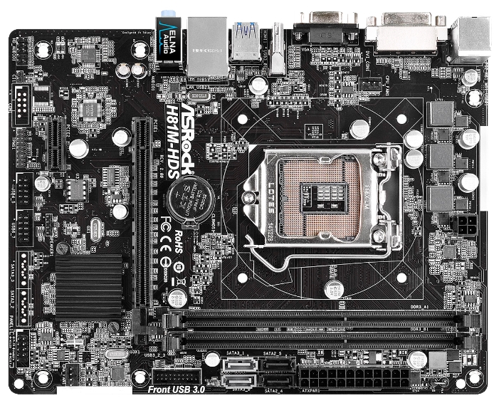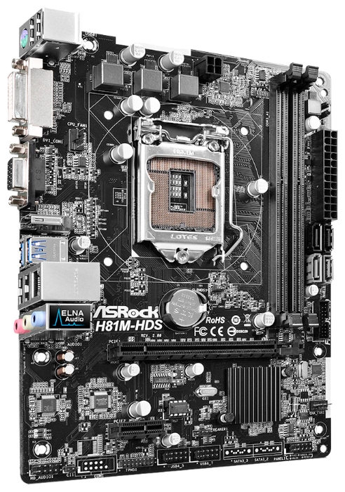 MB S1150 ASRock H81M-HDS R2.0 (Intel H81, mATX)2xDDR3(DDR3 1600/1333/1066 non-ECC, un-buffered memory),VGA,DVI,HDMI,PCI-Ex.16x1,PCIex1x1,2xSATA 6GB/s,2xSATA 3GB/s,4+4xUSB 2.0,2+2xUSB 3.0,1xGbit LAN,Audio 8ch