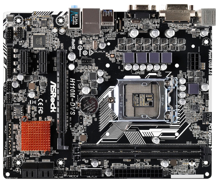 ASRock H110M-DVS R2.0MB S1151 ASRock H110M-DVS R2.0 (Intel H110, mATX)2xDDR4(DDR4 2133 memory),DVI-D,VGA,PCI-Ex.16x1 ,PCI-Ex1x2, 4xSATA 6GB/s,4+4xUSB 2.0,2+2xUSB 3.0,1xGbit LAN,Audio 8ch
