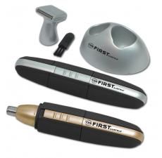 Триммер FIRST 005680-2-GO Косметический триммер Режущий элемент из нержавеющей стали Возможность влажной чистки Светодиод Качественно заточенный режущий элемент Прорезиненный корпус Насадка-триммер для висков и бороды Подставка Работа от батарейки Цвет - золотистый