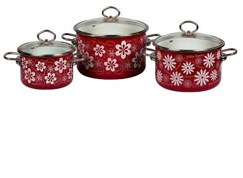 Набор кастрюль 2л/4/5,5л Белые цветы вишневый VITROSS 8DB095S-2 Общее Производитель Vitross Материал сталь с эмалированным покрытием Набор кастрюль 2л/4/5,5л Чайник нетНабор кастрюль 2л/4/5,5л Белые цветы вишневый VITROSS 8DB095S-2