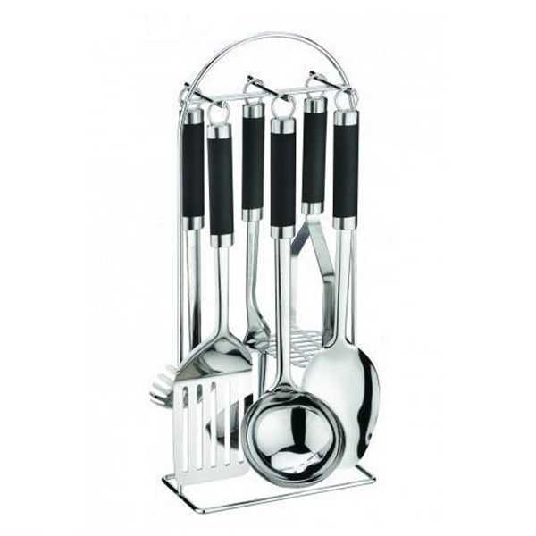 BOHMANN BH-7764 Производитель: Bohmann Артикул: BH 7764 Комплектация: Половник; Лопатка; Ложка для спагетти; Поварская ложка; Поварская вилка; Толкушка. Металлический стенд Материал нержавеющая сталь Особенности Можно мыть в посудомоечной машине Толщина стали: 2,5мм. Ручки не нагреваются