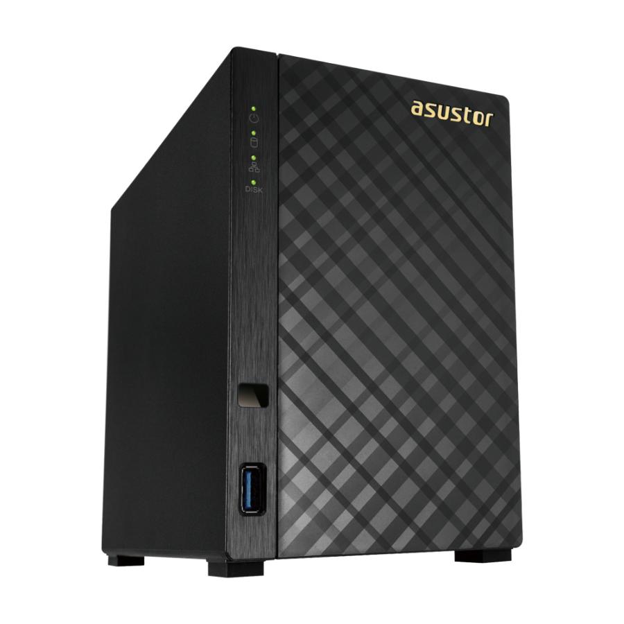 2-bay NAS Server ASUSTOR "AS1002T", Marvell Armada-385 (Dual-Core) 1GHz, 512MB DDR3, 3.5" SATA x2, USB 3.0 x2, Gigabit LAN x1, Hardware Encryption Engine, Surveillance: Max.IP cam-8 (4 Free Licenses)