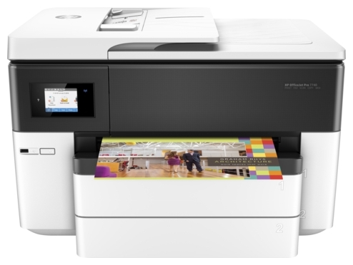HP OfficeJet Pro 7740 Wide A3+ AiO Print/Copy/Scan/Fax, up to 34ppm, 4800x1200dpi, Duplex, 512MB Memory, 6,75 cm Touch LCD, up to 30000 pages, 35 pages ADF, USB 2.0, WiFi 802.11b/g/n, Ethernet, RJ-11, ePrint, AirPrint™ (#952/XL B/C/M/Y Cartridge)