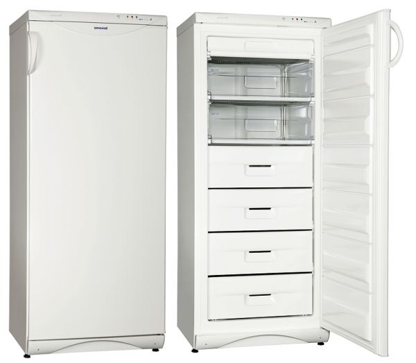 Холодильник SNAIGE F245-1704AА Размеры: 145x60x60 cm Полезный объем морозильника: 205 л Класс энергопотребления: A+ Цвет: белый Общий объем 243 л Температура в морозильной камере -18°C и ниже Мощность замораживания - 24 кг/ч. Время повышения температуры при отключении электроэнергии - 19 ч. Уровень шума - 41 дБА Перевешиваемые двери Размораживание - механическое Отсек подготовки льда Режим быстрого замораживания FAST FREEZE 2 отделения FAST FREEZE для быстрого замораживания с откидной дверцей 4 выдвижные ящики - отсеки хранения
