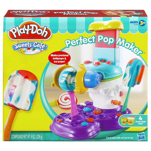 HASBRO Play Doh PERFECT POP MAKER Делаем фруктовый лёд! И леденцы! В наборе: пресс-фабрика, формочки, палочки, 4 банки пластилина разных цветов. Возраст: от 3-х лет. Производитель: Hasbro, ХасброHASBRO Play Doh PERFECT POP MAKER