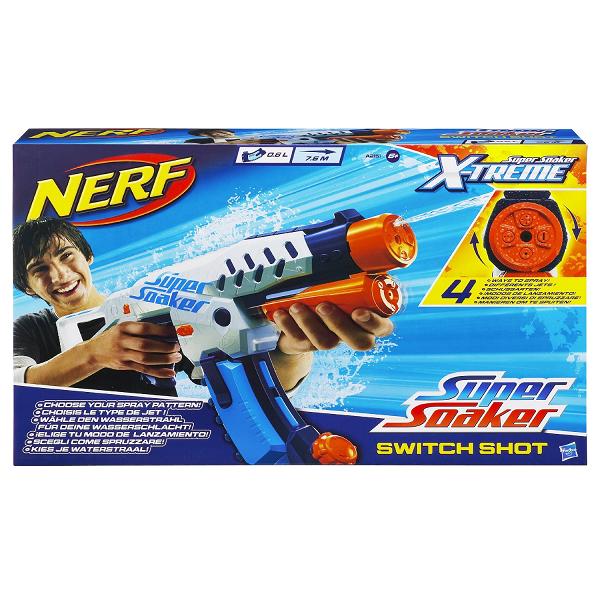 HASBRO NERF SOA SWITCH SHOT Водяной бластер Свитчшот с ручной перезарядкой стреляет 4 разными типами струй (ручное переключение). В комплекте обойма и съемный приклад. Стреляет на расстояние до 7,6 м! Размер коробки: 52 х 31 х 9 см Возраст: от 6-ти лет. Производитель: Hasbro, Хасбро
