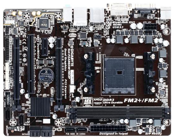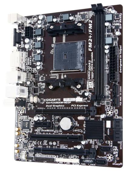 MB SFM2+ Gigabyte GA-F2A88XM-HD3P 1.0 (AMD A88X,mATX)AMD A series & Athlon series processors2xDDR3 (2400 OC/1866/1600/1333/1066) ,VGA,DVI,HDMI, 2xPCI-Ex16(16X/4X), 1xPCI+1xPCI-Ex1,8xSATA 6Gb/s,RAID 0/1/5/10, 8xUSB 2.0,4xUSB 3.0,Gbit LAN,HD Audio 8ch.