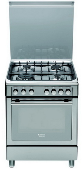 HOTPOINT ARISTON CX65S7D2 IT (X)/HA H - Тип: комбинированная - Поверхность: эмаль - Газ-контроль - Электроподжиг - Цвет: нержавеющая сталь - Очистка духовки: традиционная - Размеры (ВхШхГ): 85x60x60 см - Тип: механическое - Переключатели: поворотные - Духовка: электрическая - Гриль: электрический - Количество режимов работы: 7 - Программы: традиционная духовка, кондитерская выпечка, быстрое приготовление, одновременное приготовление, пицца, гриль, подрумянивание - Таймер - Освещение - Всего конфорок: 4 - Газ-контроль в конфорках - Автоматический электроподжиг: одной рукой - Чугунная решетка - Регулируемые ножки по высоте - Класс энергопотребления: А