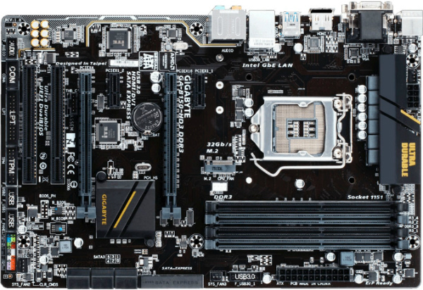 Процессор Socket LGA1151 Поддерживаемые процессоры Intel Core i7/Core i5/Core i3/Pentium/Celeron Поддержка многоядерных процессоров есть Чипсет Чипсет Intel B150 BIOS AMI c возможностью аварийного восстановления Поддержка EFI есть Поддержка SLI/CrossFire CrossFire X Память Память DDR3/DDR3L DIMM, 1333-1866 МГц Тип памяти ECC/non-ECC Количество слотов памяти 4 Поддержка двухканального режима есть Максимальный объем памяти 32 Гб Дисковые контроллеры IDE нет SATA количество разъемов SATA 6Gb/s: 6 Количество разъемов SATA Express 1 Количество слотов M.2 1 Тип слотов M.2 Socket 3 Слоты расширения Слоты расширения 2xPCI-E x16, 2xPCI-E x1, 2xPCI Поддержка PCI Express 3.0 есть Аудио/видео Звук 7.1CH, HDA, на основе Realtek ALC892 Сеть Ethernet 1000 Мбит/с Подключение Наличие интерфейсов 12 USB, из них 6 USB 3.0 (4 на задней панели), выход S/PDIF, 1xCOM, D-Sub, DVI, HDMI, Ethernet, PS/2 (клавиатура), PS/2 (мышь), LPT Разъемы на задней панели 6 USB, из них 4 USB 3.0, D-Sub, DVI, HDMI, Ethernet, PS/2 (клавиатура), PS/2 (мышь) Основной разъем питания 24-pin Разъем питания процессора 8-pin Тип системы охлаждения пассивное Дополнительные параметры Форм-фактор ATX Комплектация 2 кабеля SATA, заглушка тыловых портов корпуса