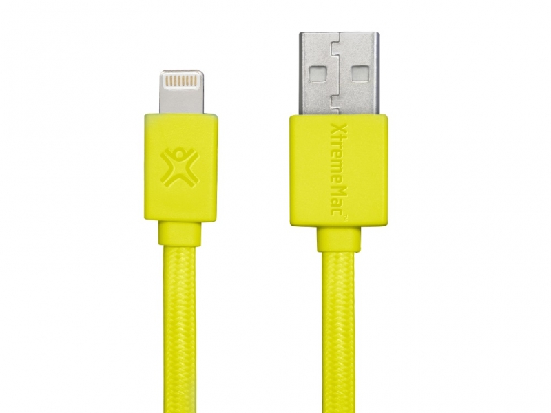 Cable Lightning 1.0m - XtremeMac Flat Cable, Yellow, Apple MFI Certified, Premium Quality, Nylon structure, Resistant