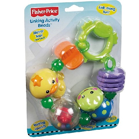 Mattel FP "Prietenii Veseli" Mattel Fisher-Price Игрушка-подвеска "Веселые друзья" Данное изделие представляет собой непрерывно соединенные подвижные бусины для игр во время прогулок малыша. В погремушке используется пластмасса с гладкой и шероховатой поверхностью для развития тактильных ощущений у малышей. Две крутящиеся бусины подходят для прорезывающихся зубов, одна вращающаяся литая черепашка с зеркальцем для игры с ребенком в игру "ку-ку", вращающаяся в шаре рыбка с погремушкой из бусин и вращающаяся литая утка. Бусины можно соединять в круг или подвесить в линию. Большое звено (в форме лягушки) наверху присоединяется к развивающим центрам, игровым коврикам, коляскам и др. Рекомендуемый возраст: 3 - 18 месяцев